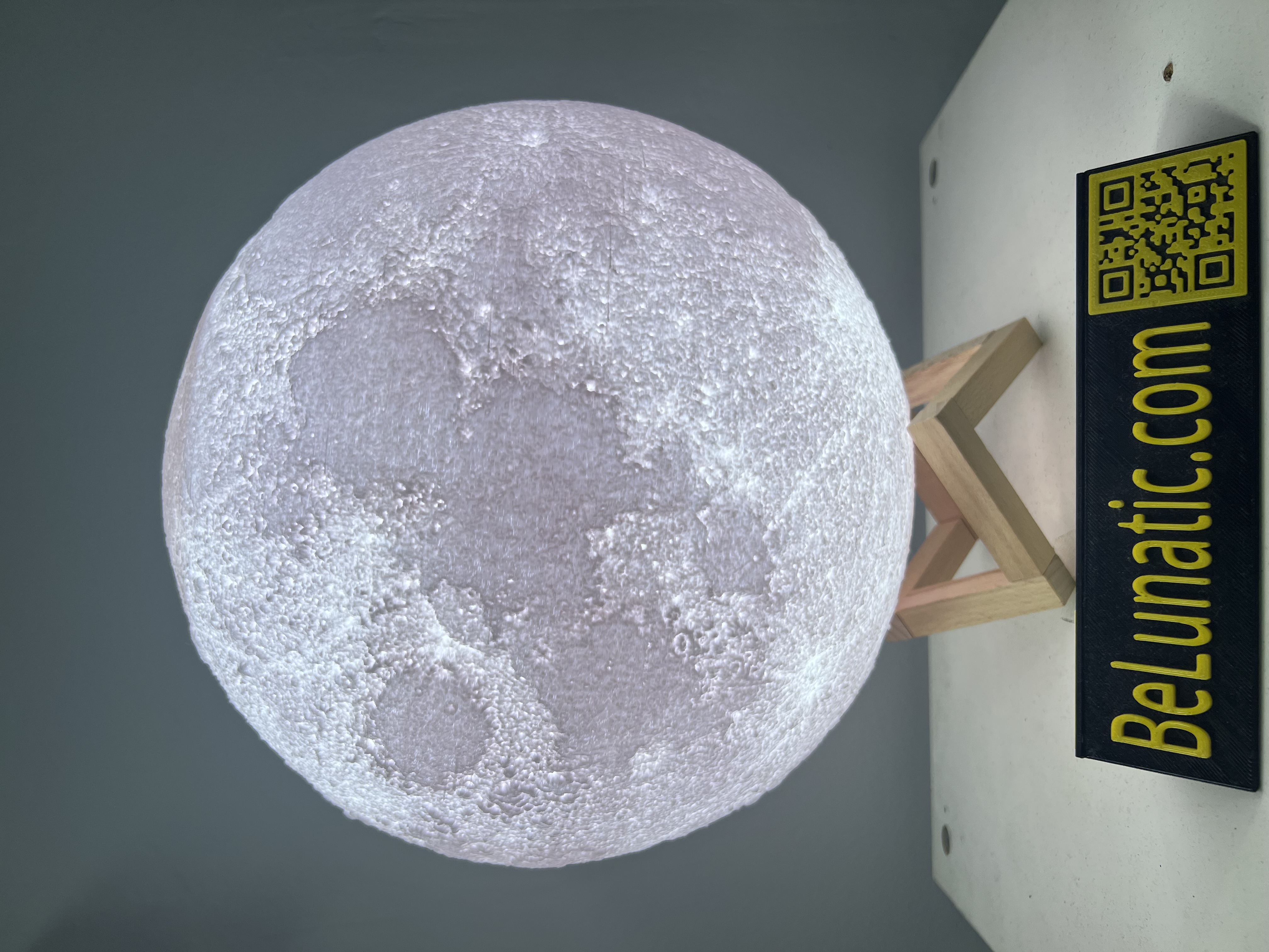 La Luna más grande jamás creada por BeLunatic, 100% impresa en 3D en España, sin prisa, más de 160h de impresión para garantizar el máximo detalle de la superficie lunar.